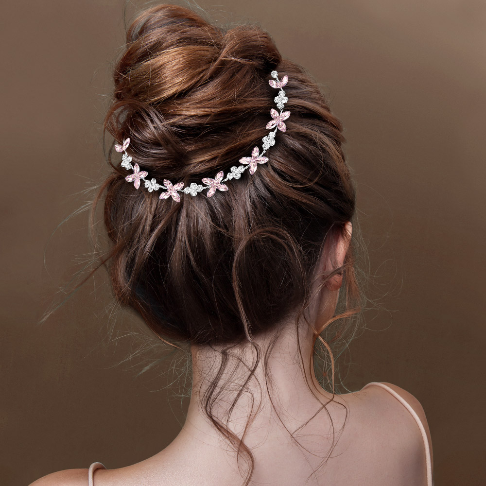 Marquise Round Stone Flower Vine Bun Wrap Headpiece