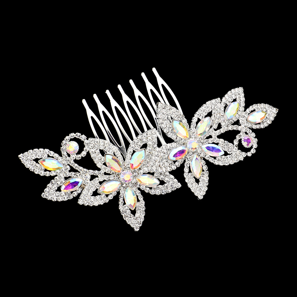 Marquise Stone Accented Flower Hair Comb