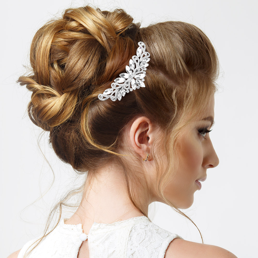 Marquise Stone Accented Flower Pointe Hair Comb