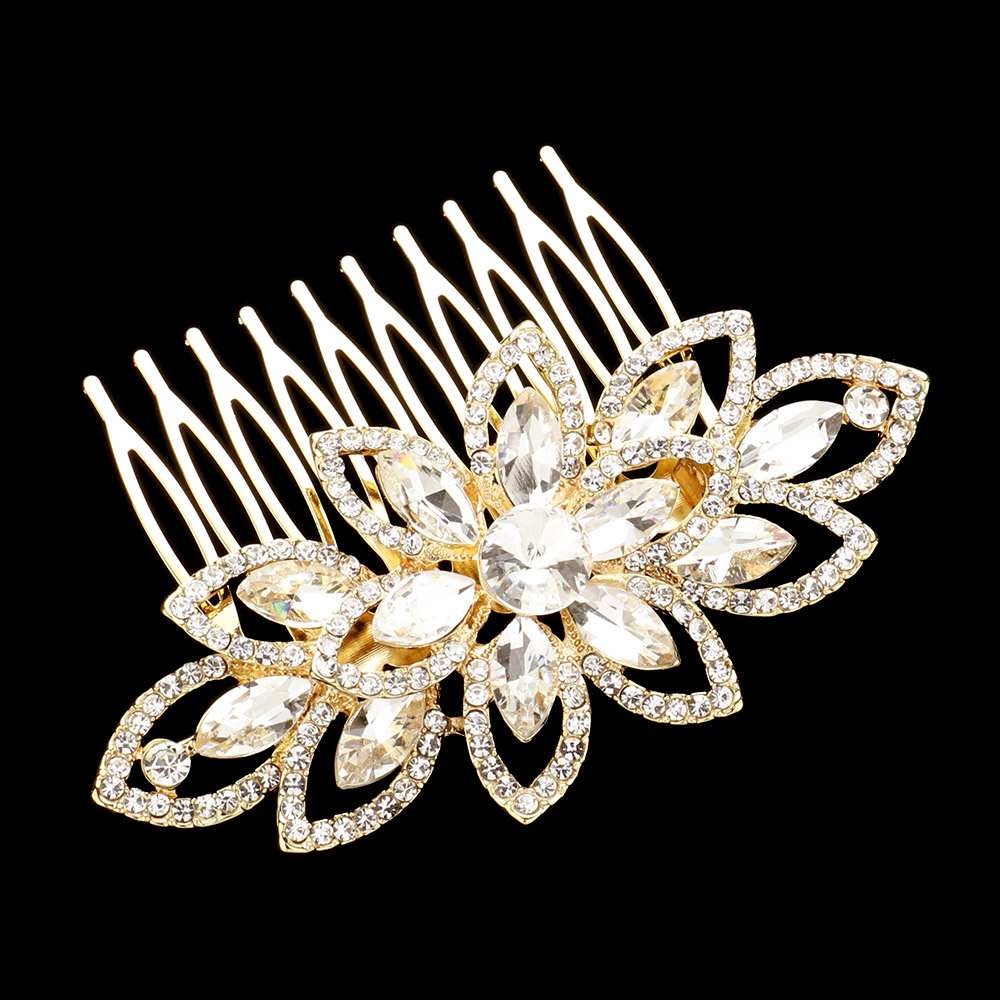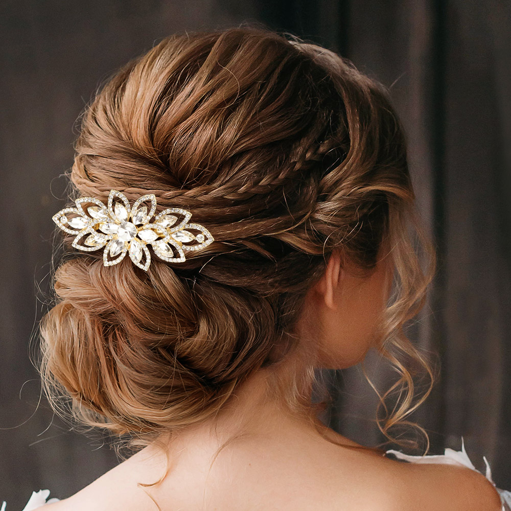 • Add timeless beauty to your hairstyle with this floral crystal hair clip. Designed for formal occasions and bridal looks, it secures your updo with grace and sparkles with refined charm.