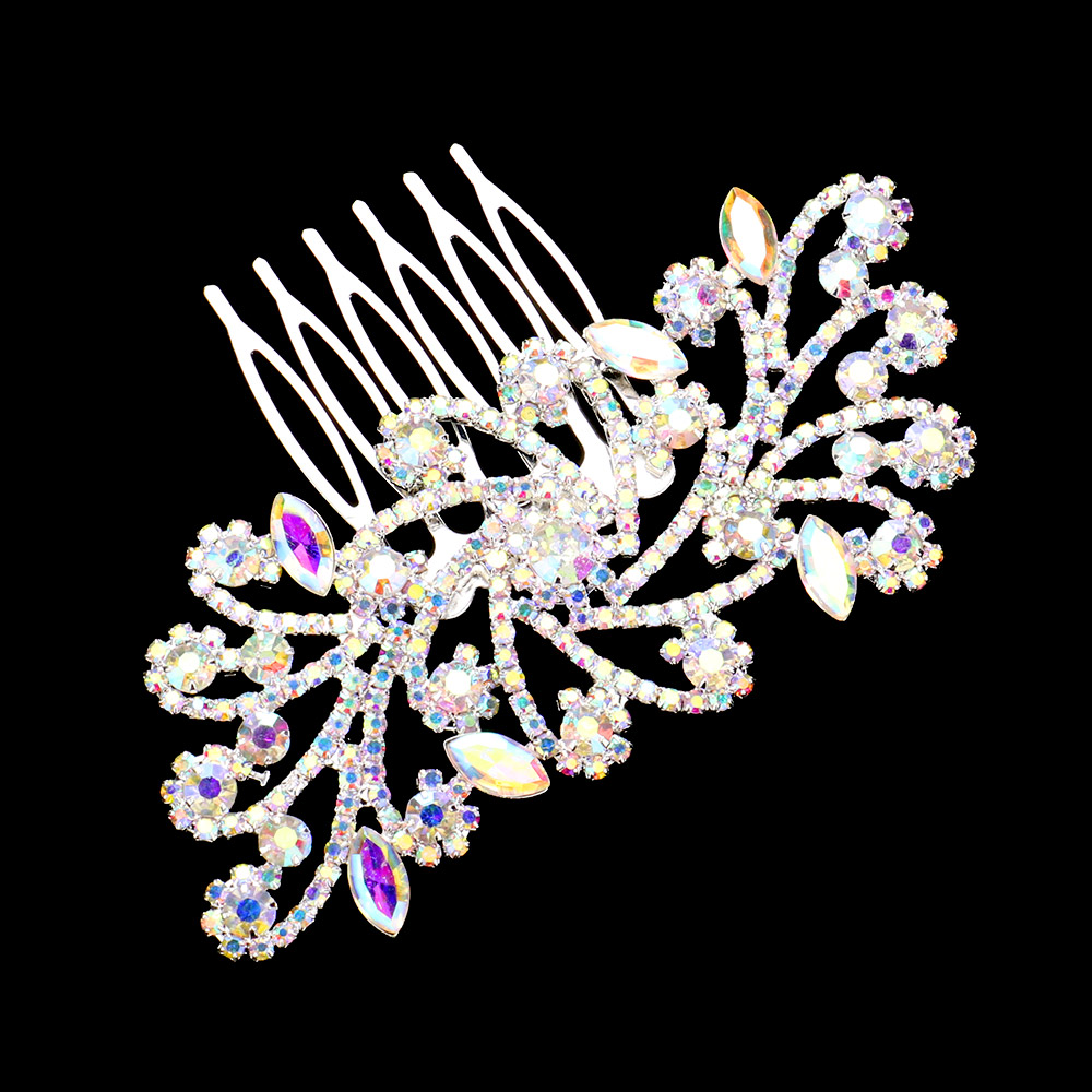 Marquise Stone Accented Rhinestone Paved Flower Leaf Vine Hair Comb