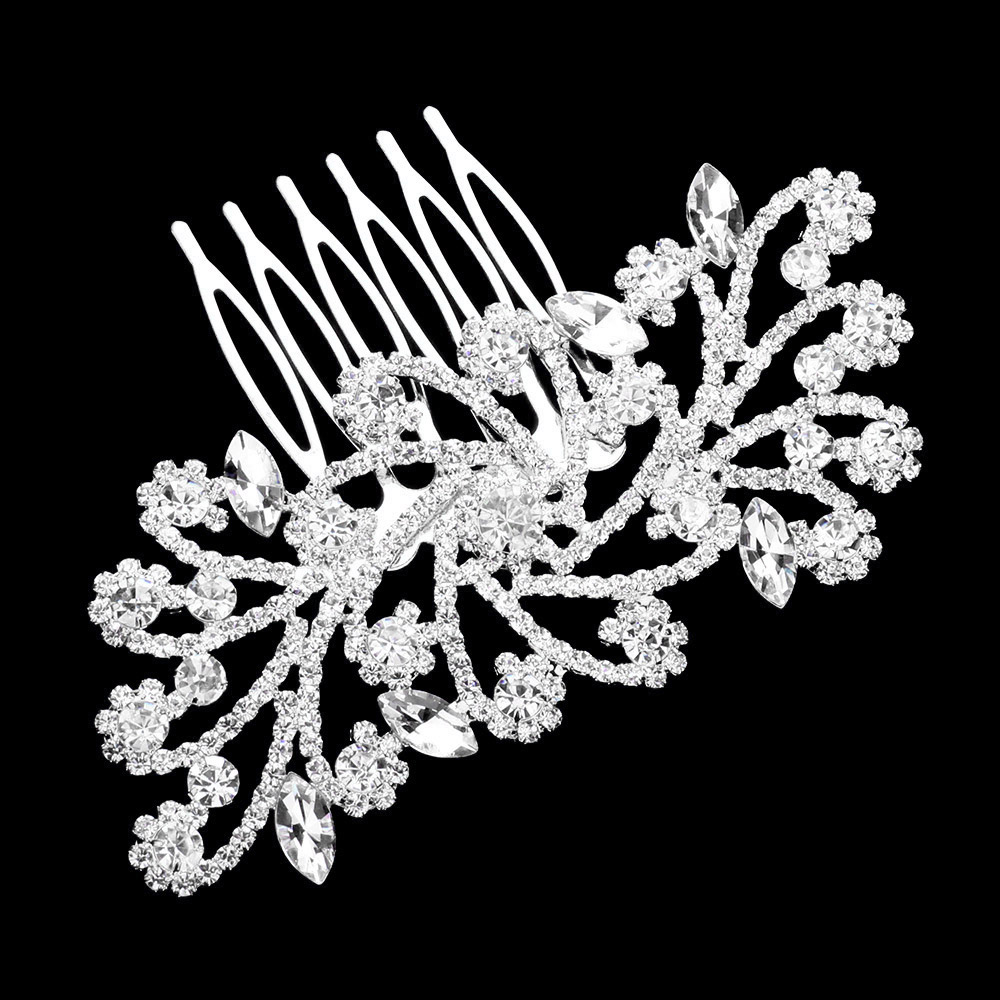 Marquise Stone Accented Rhinestone Paved Flower Leaf Vine Hair Comb
