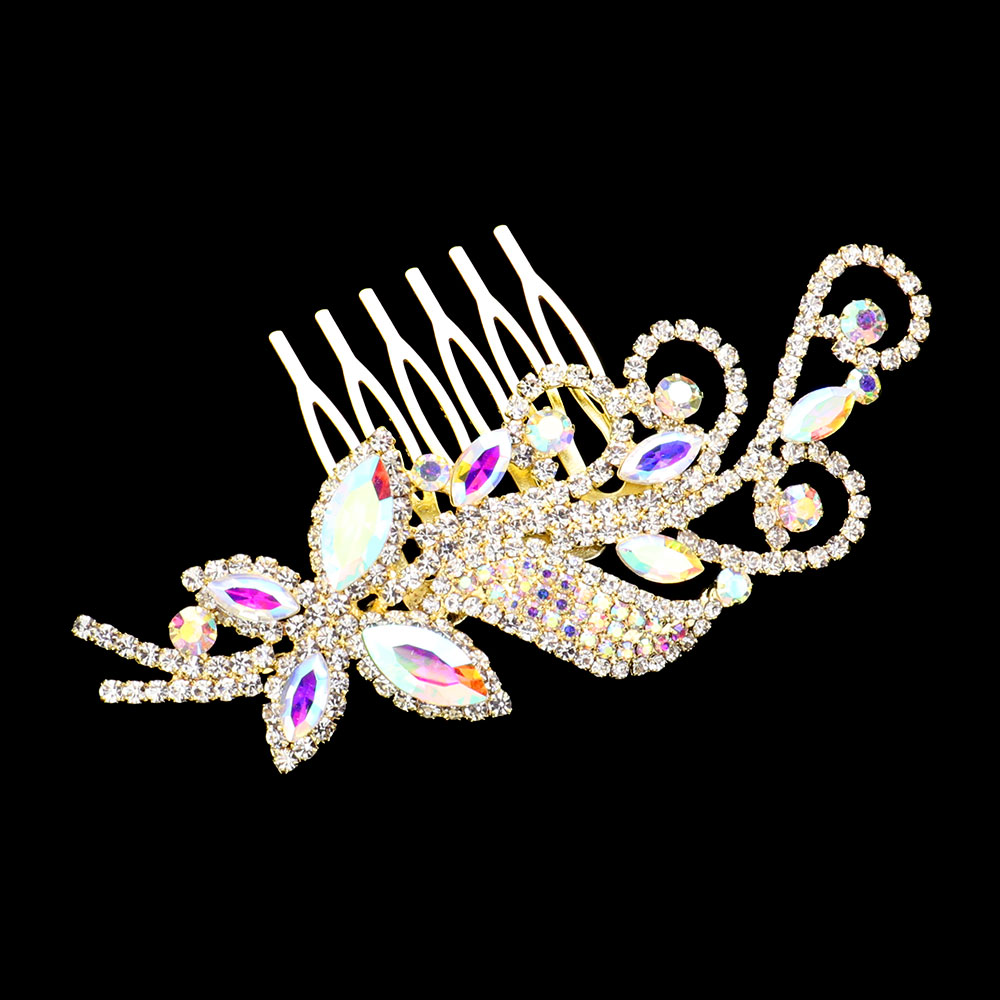 Marquise Stone Cluster Butterfly Rhinestone Paved Hair Comb