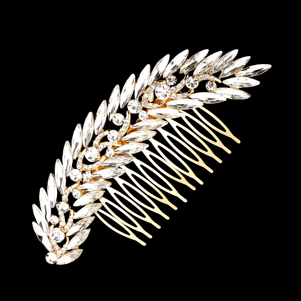 Stone Embellished Flower Leaf Cluster Vine Hair Comb