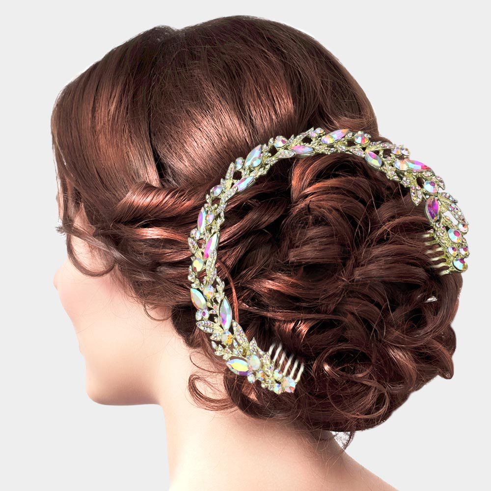 Marquise Stone Leaf Cluster Bun Hair Comb