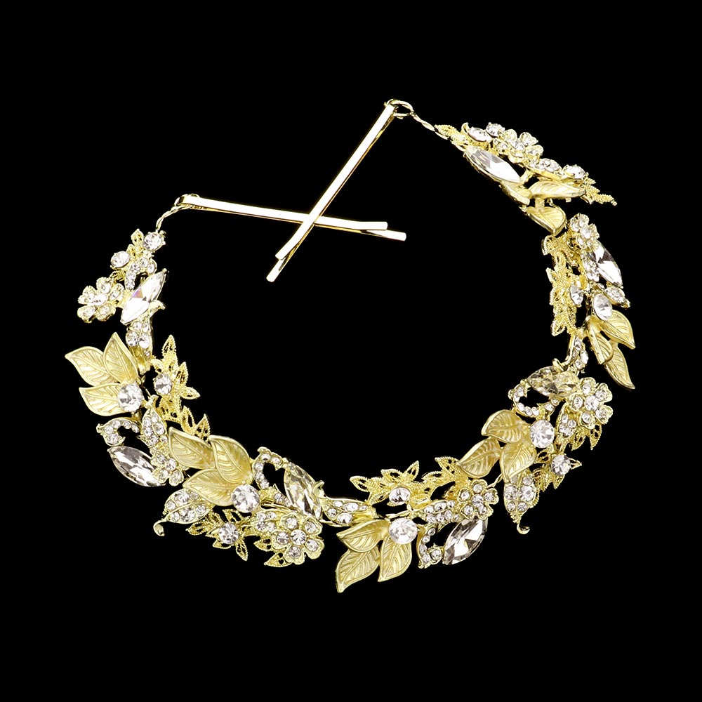 Details • Size : 11" X 1" • A Pair Bobbi Pin Included • Complete your bridal or special occasion hairstyle with this floral hair vine wrap. Designed with delicate blossoms and crystal-inspired details, it curves gracefully around buns and updos for a soft, romantic look. Lightweight and flexible for easy styling and secure wear.