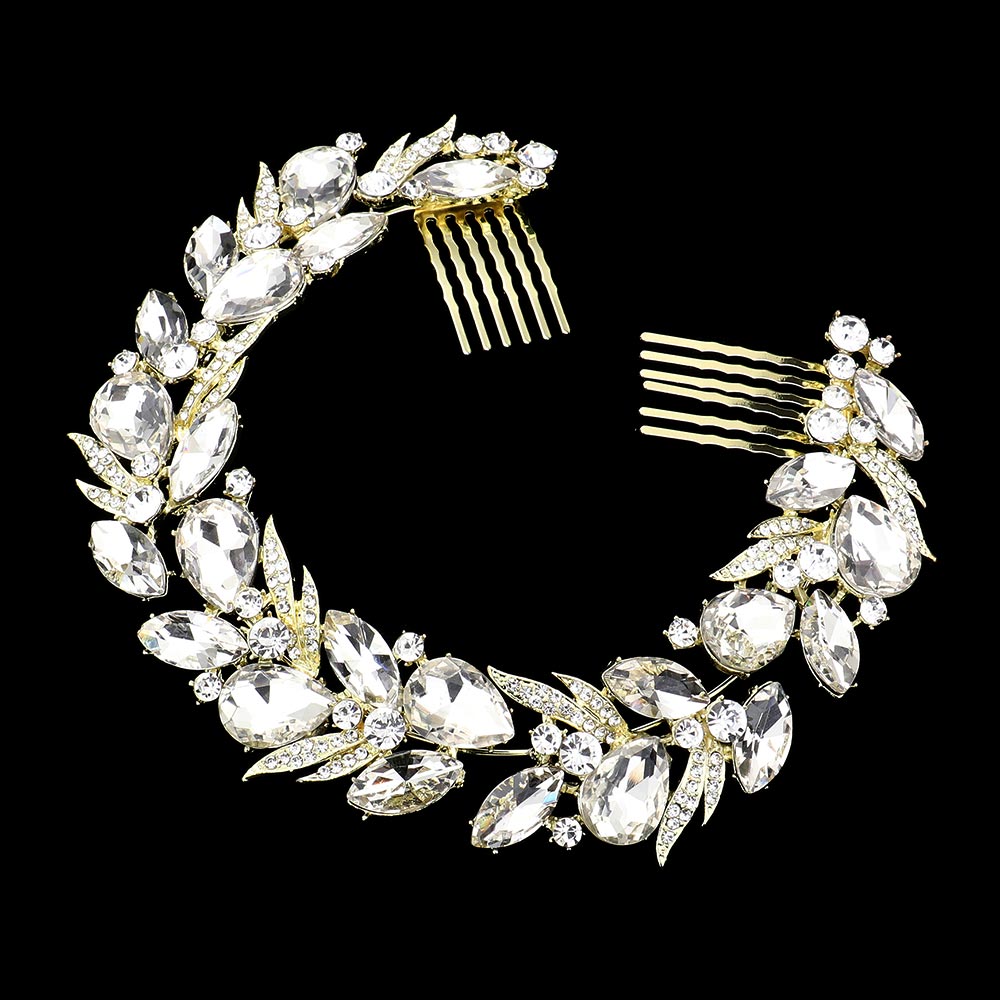 Details • Size : 11" X 1.25" • Complete your bridal look with this circular crystal hairpiece, designed with bold leaf and vine accents for a glamorous finish. Perfect for securing elegant updos, this sparkling accessory adds timeless charm to weddings, proms, and formal occasions.