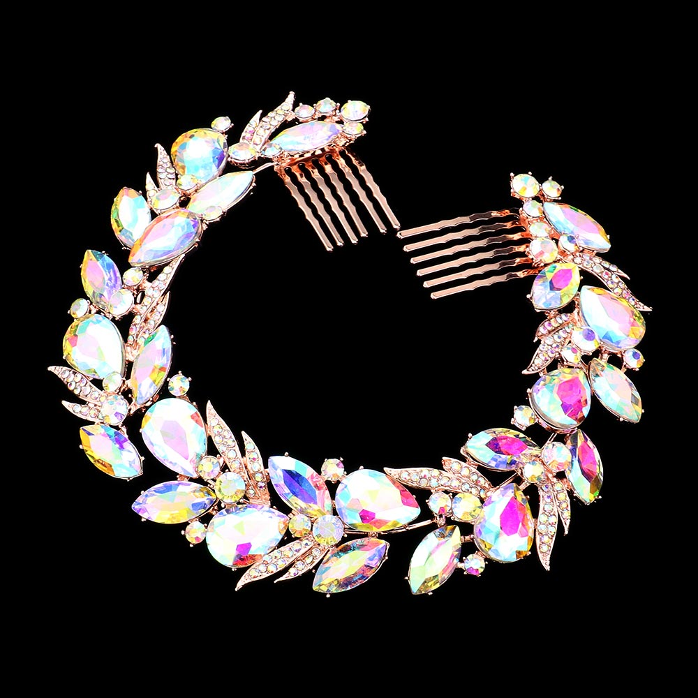 Details • Size : 11" X 1.25" • Complete your bridal look with this circular crystal hairpiece, designed with bold leaf and vine accents for a glamorous finish. Perfect for securing elegant updos, this sparkling accessory adds timeless charm to weddings, proms, and formal occasions.