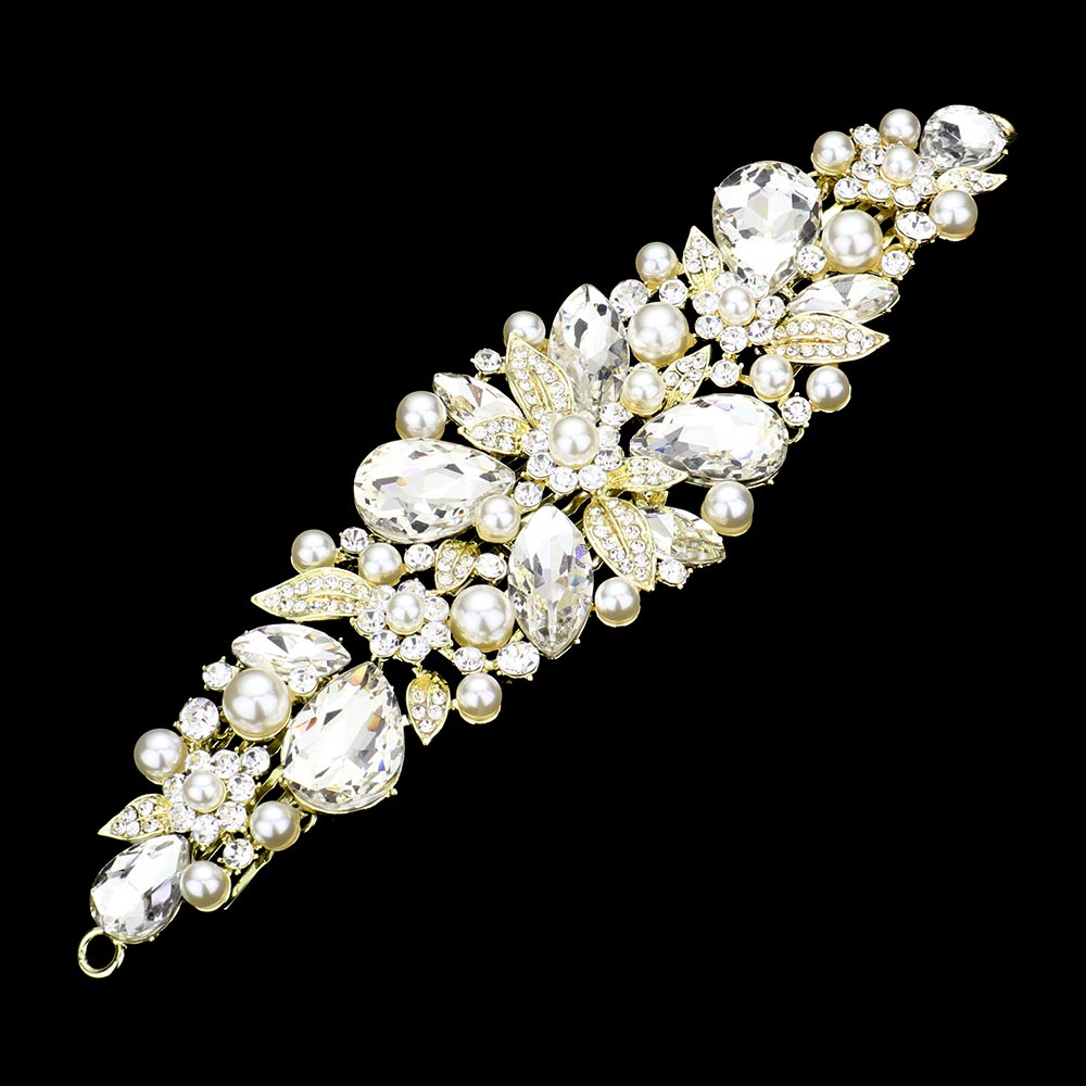 Pearl Multi Stone Embellished Flower Leaf Hair Comb