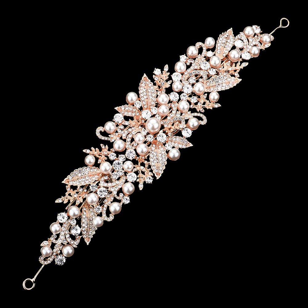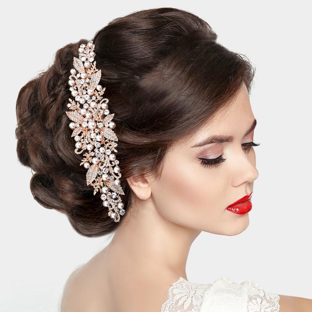 Pearl Stone Embellished Leaf Cluster Hair Comb