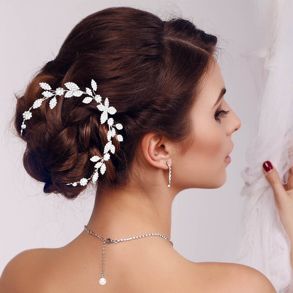 Details • Size : 11" X 1" • A Pair Bobby Pin Included • Elevate your bridal hairstyle with this circular crystal leaf hair vine. Featuring sparkling accents and a graceful vine design, this wedding hairpiece adds timeless elegance to updos, making it perfect for brides, bridesmaids, and special occasions.