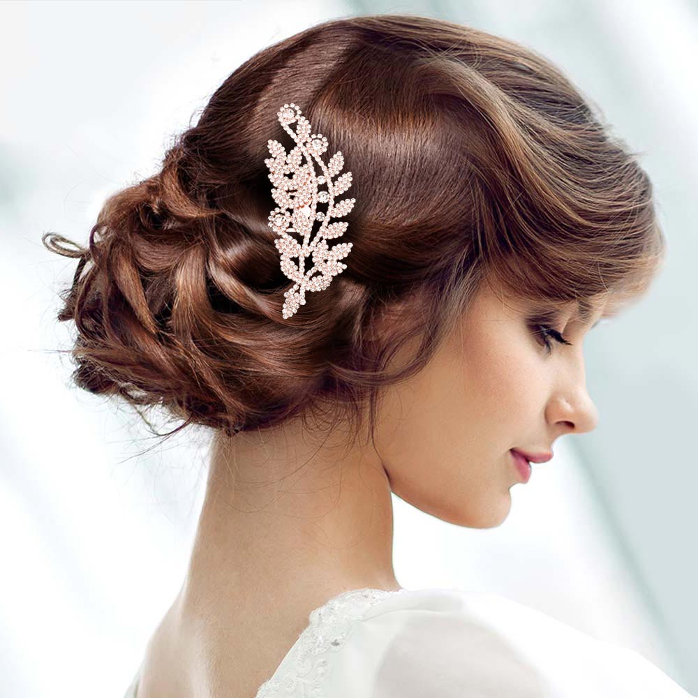 Details • Size : 3.6" X 1.5" • Decorative hair clip featuring a delicate leaf motif with crystal accents. Perfect for weddings, proms, or formal occasions, it adds refined sparkle to updos and romantic styles without overpowering the look. • Lead and Nickel Compliant