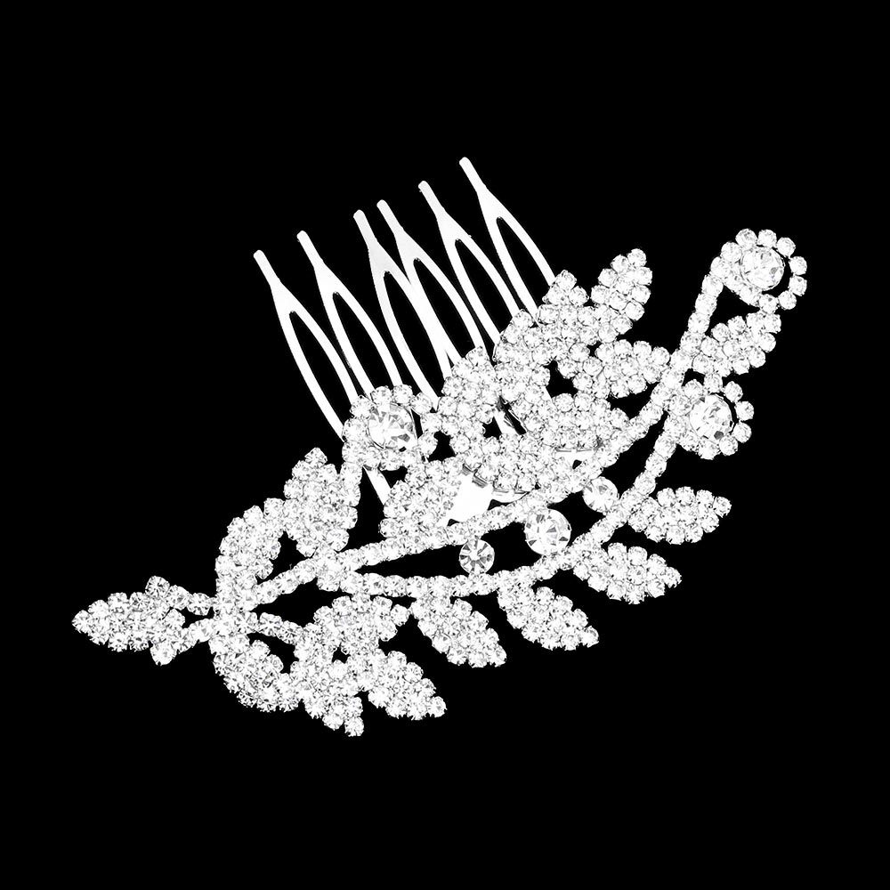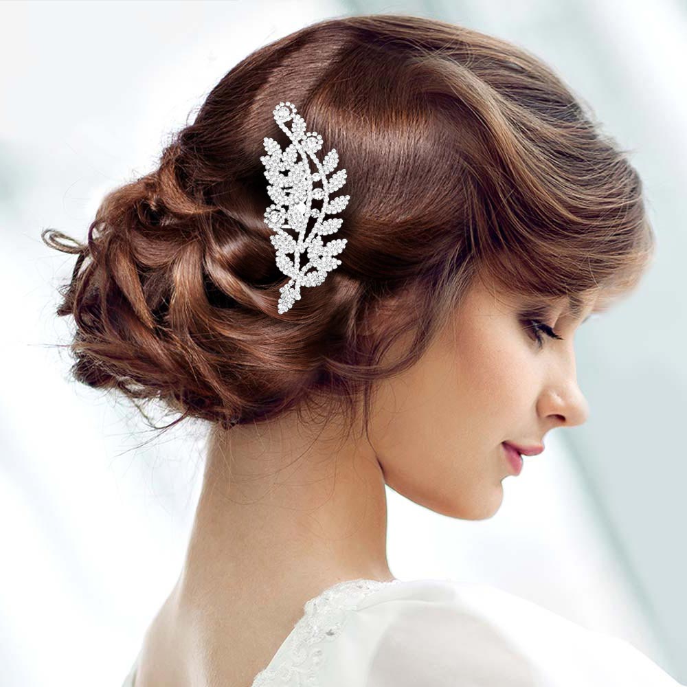 Details • Size : 3.6" X 1.5" • Decorative hair clip featuring a delicate leaf motif with crystal accents. Perfect for weddings, proms, or formal occasions, it adds refined sparkle to updos and romantic styles without overpowering the look. • Lead and Nickel Compliant