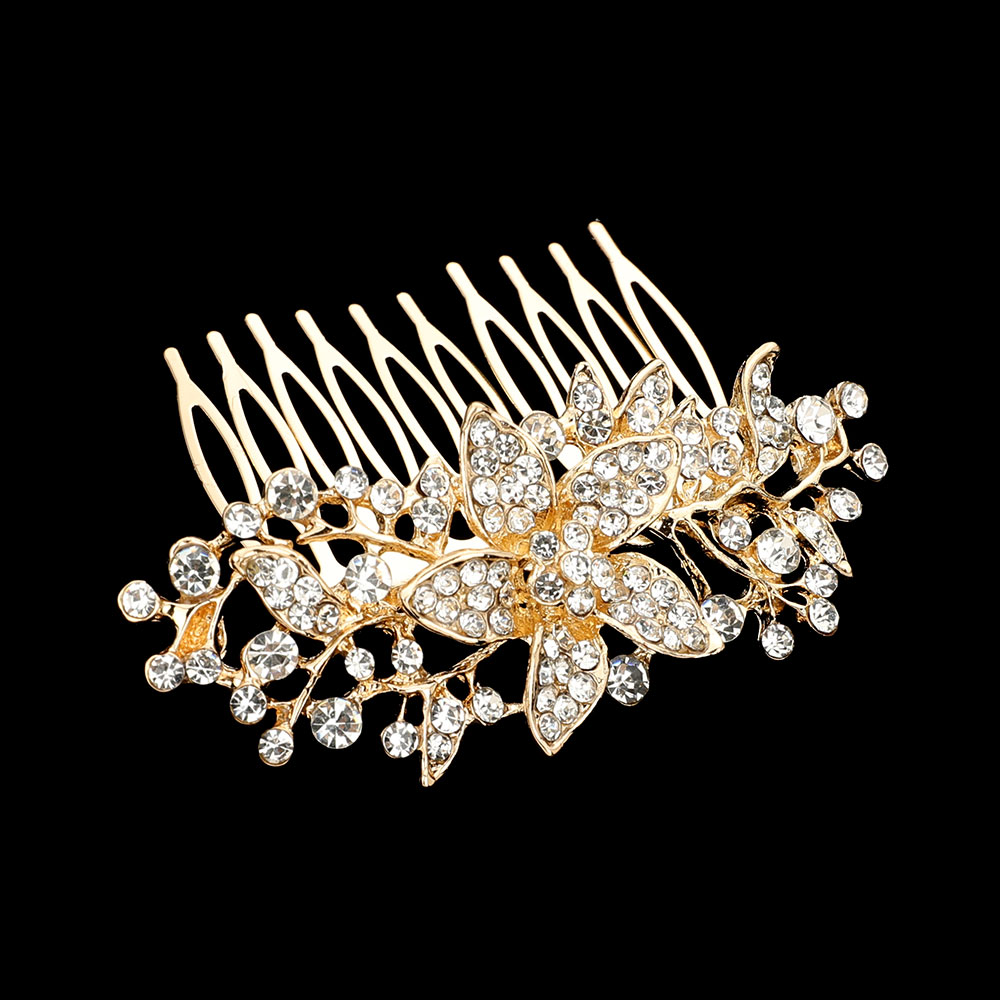 Rhinestone Paved Flower Center Branch Hair Comb