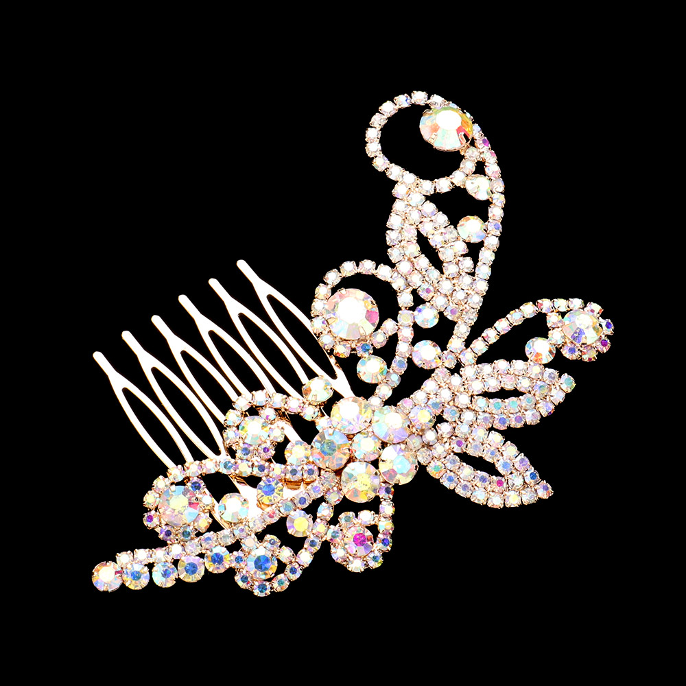 Rhinestone Paved Flower Leaf Pointed Hair Comb