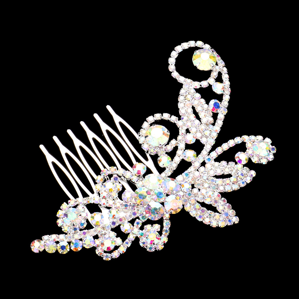 Rhinestone Paved Flower Leaf Pointed Hair Comb