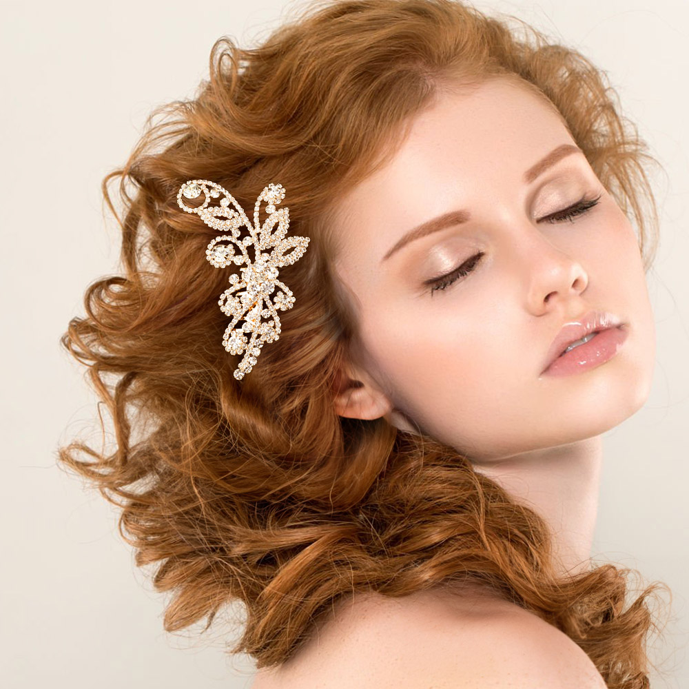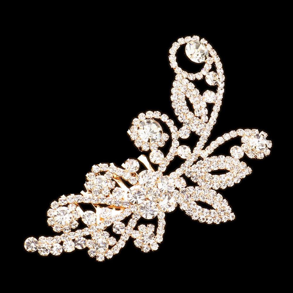 Rhinestone Paved Flower Leaf Pointed Hair Comb