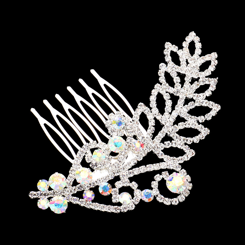 Rhinestone Paved Flower Leaf Pointed Hair Comb