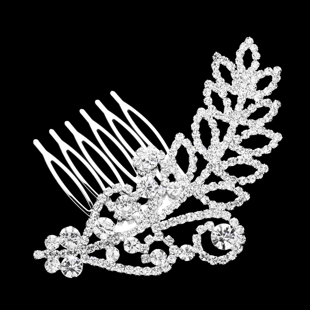 Rhinestone Paved Flower Leaf Pointed Hair Comb
