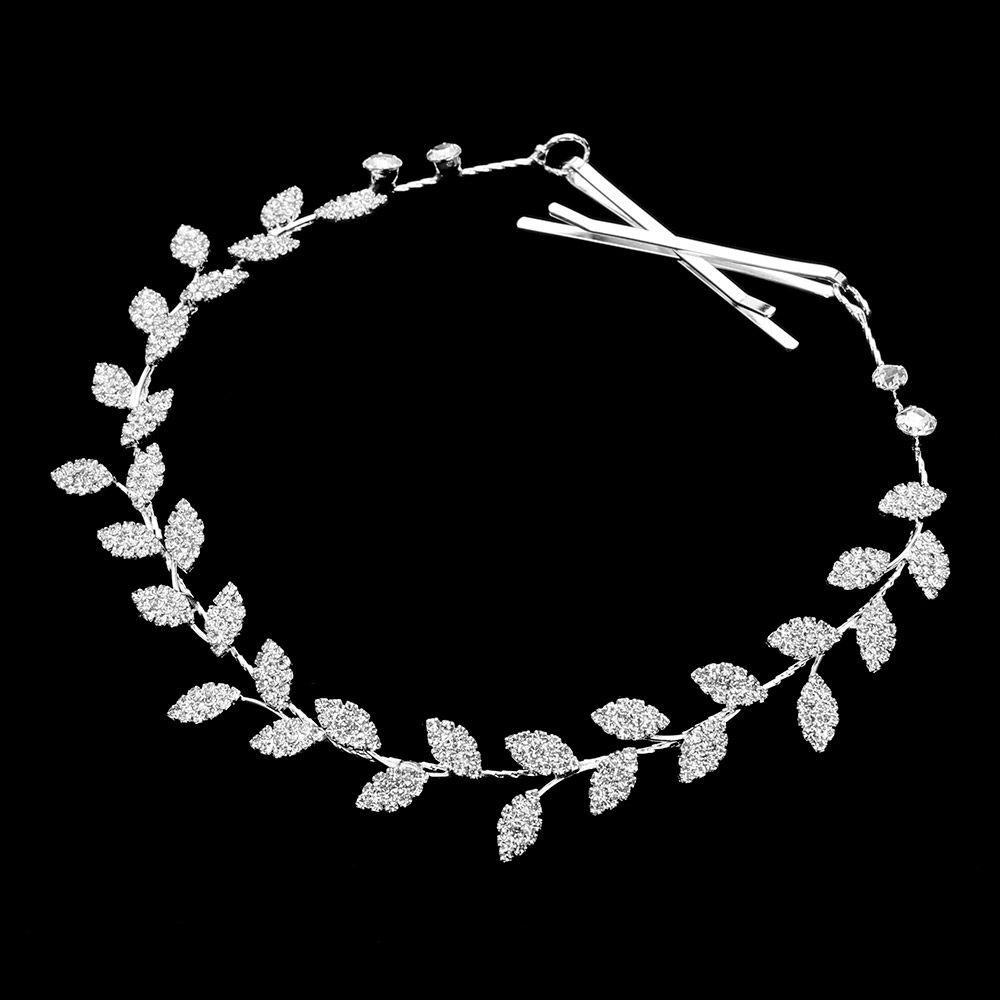 Details • Size : 11" X 0.6" • A Pair Bobby Pin Included • Delicate leaf-design crystal hair vine ideal for weddings, proms, or formal events. Flexible and lightweight with secure loops for pins. Adds a touch of elegance and sparkle to any hairstyle. • Lead and Nickel Compliant