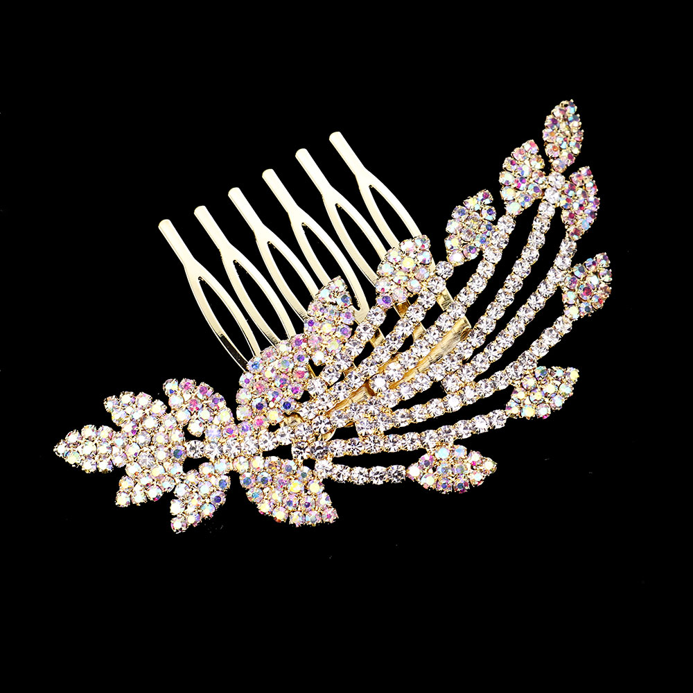 Rhinestone Teardrop Sprout Leaf Hair Comb