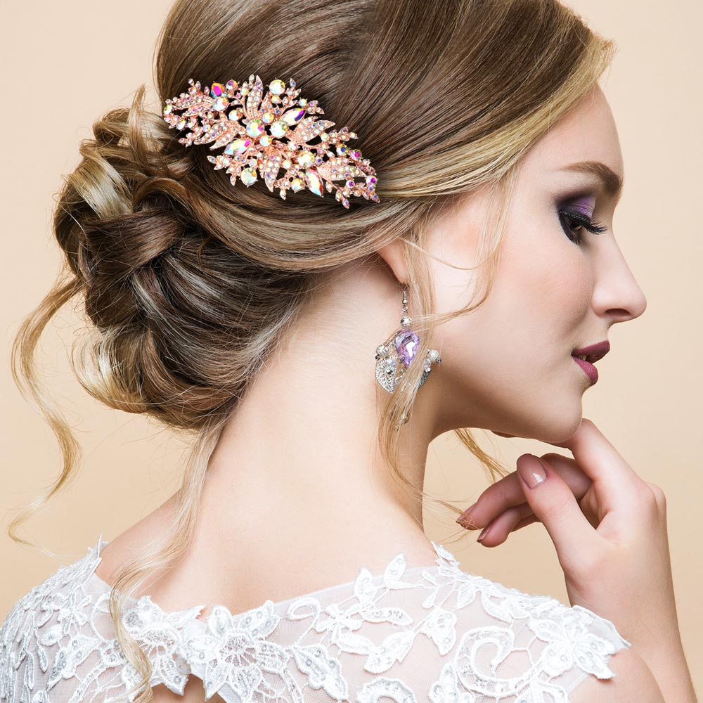 Details • Size : 4" X 2.5" • Add elegance to your bridal hairstyle with this floral crystal hair comb, designed to shine beautifully in updos or half-up styles. A timeless wedding accessory that provides sparkle and sophistication, making it perfect for brides, bridesmaids, or special occasions.