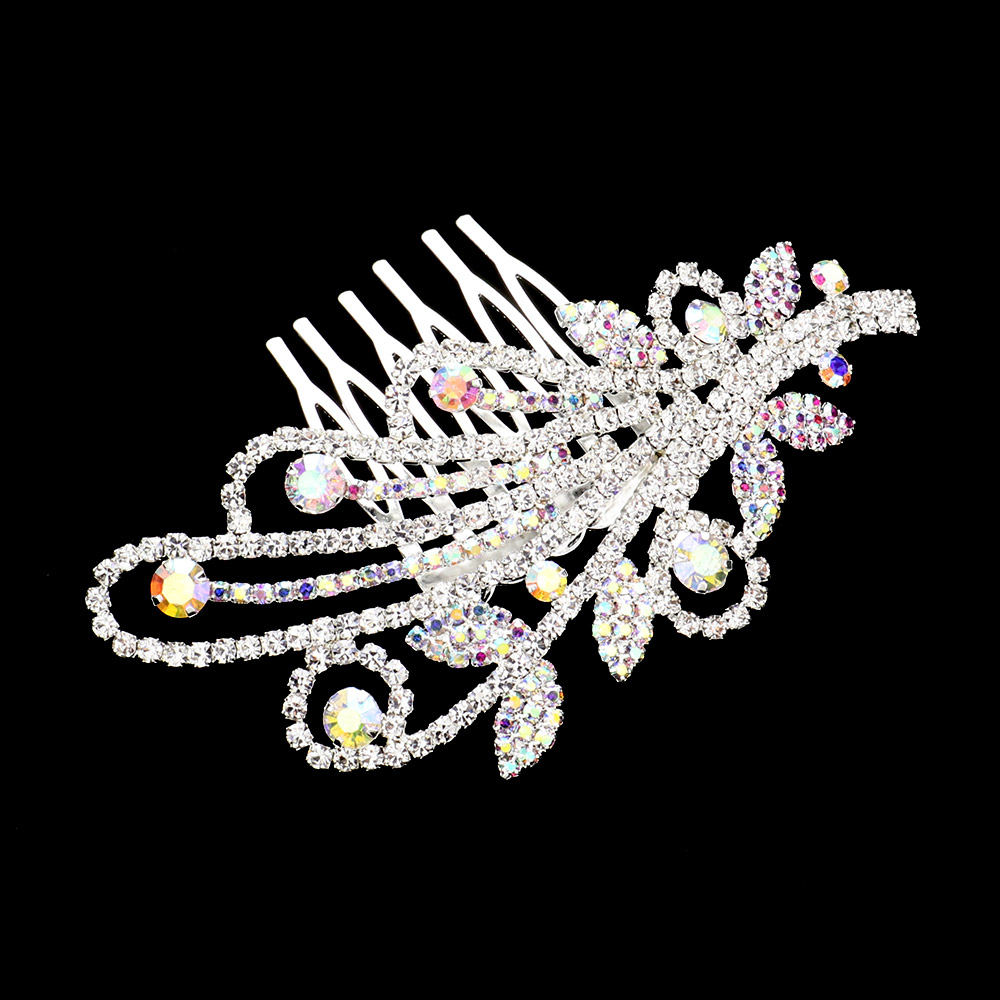 Rhinestone Pave Leaf Hair Comb
