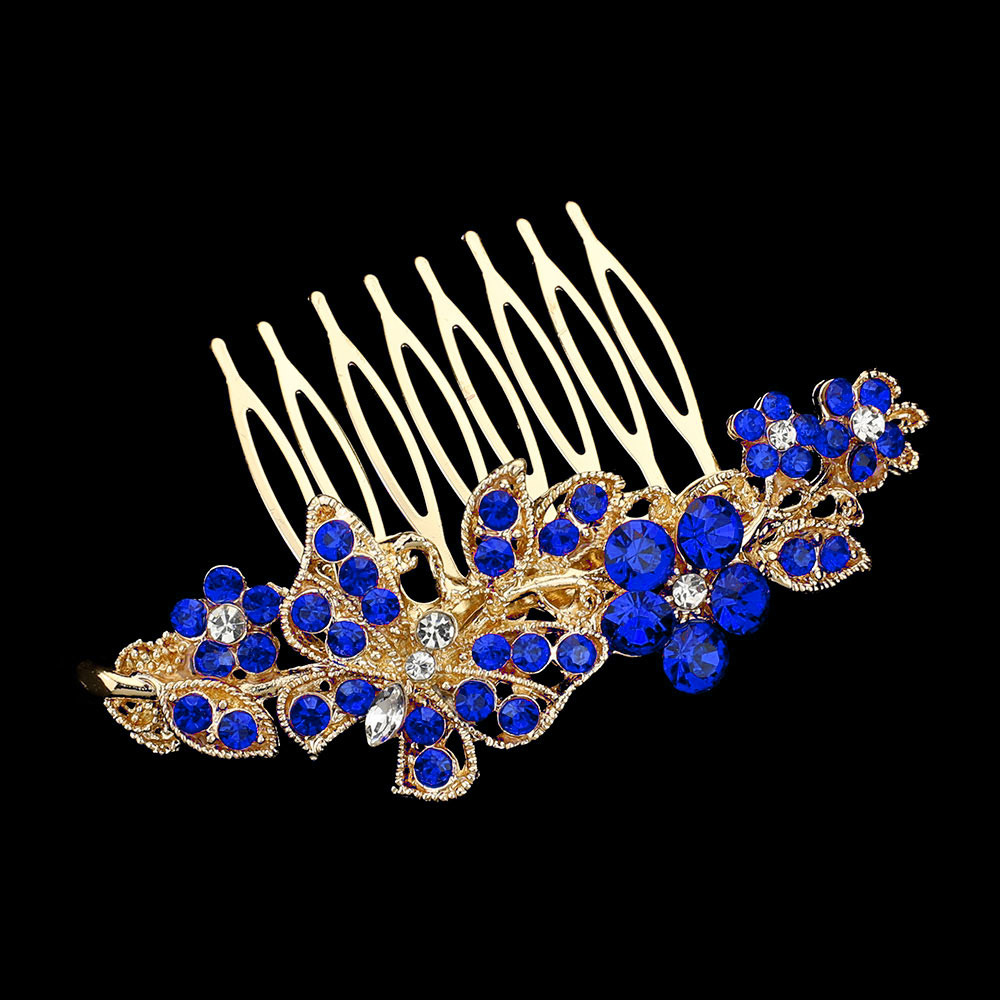 Stone Embellished Butterfly Flower Accented Hair Comb