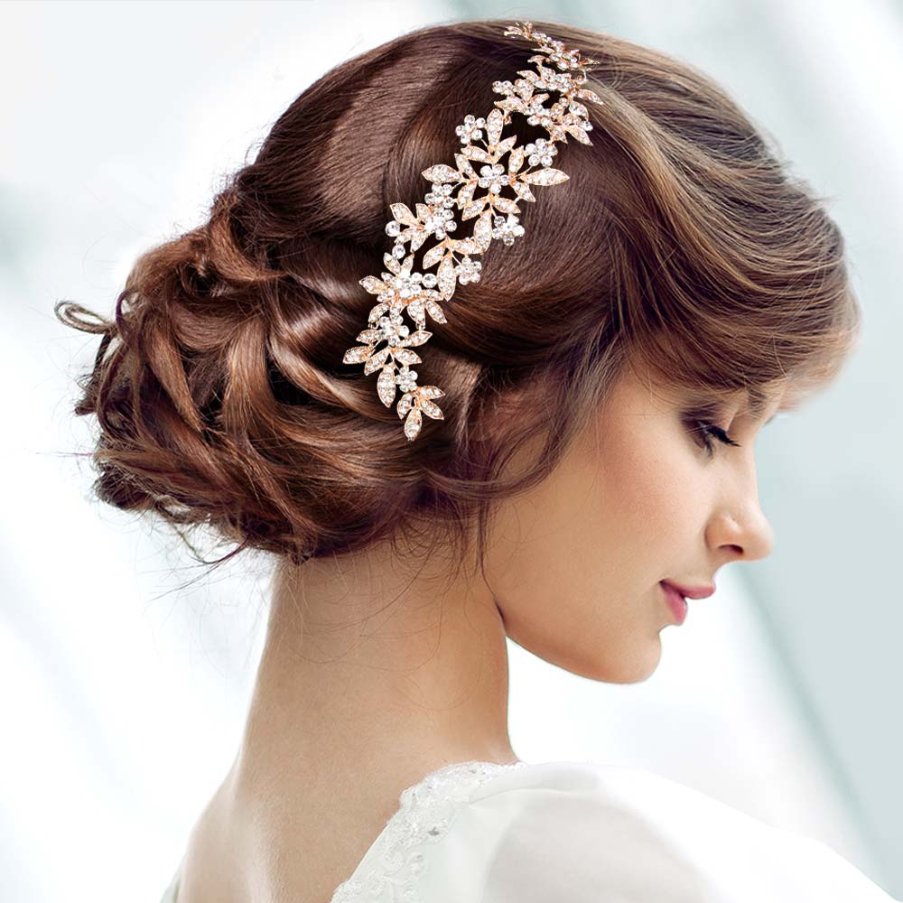 Stone Embellished Flower Leaf Cluster Vine Bun Wrap Headpiece