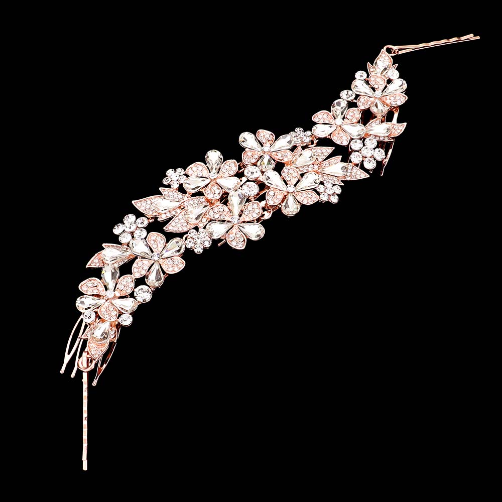 Stone Embellished Flower Leaf Cluster Vine Hair Comb