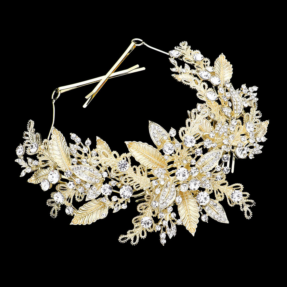 Stone Embellished Leaf Cluster Bun Wrap Headpiece Stone Embellished Leaf Cluster Bun Wrap Headpiece