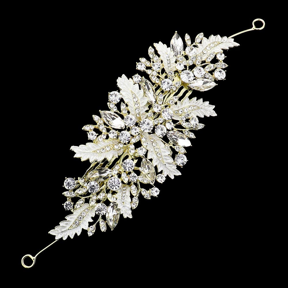 Stone Embellished Leaf Cluster Hair Comb