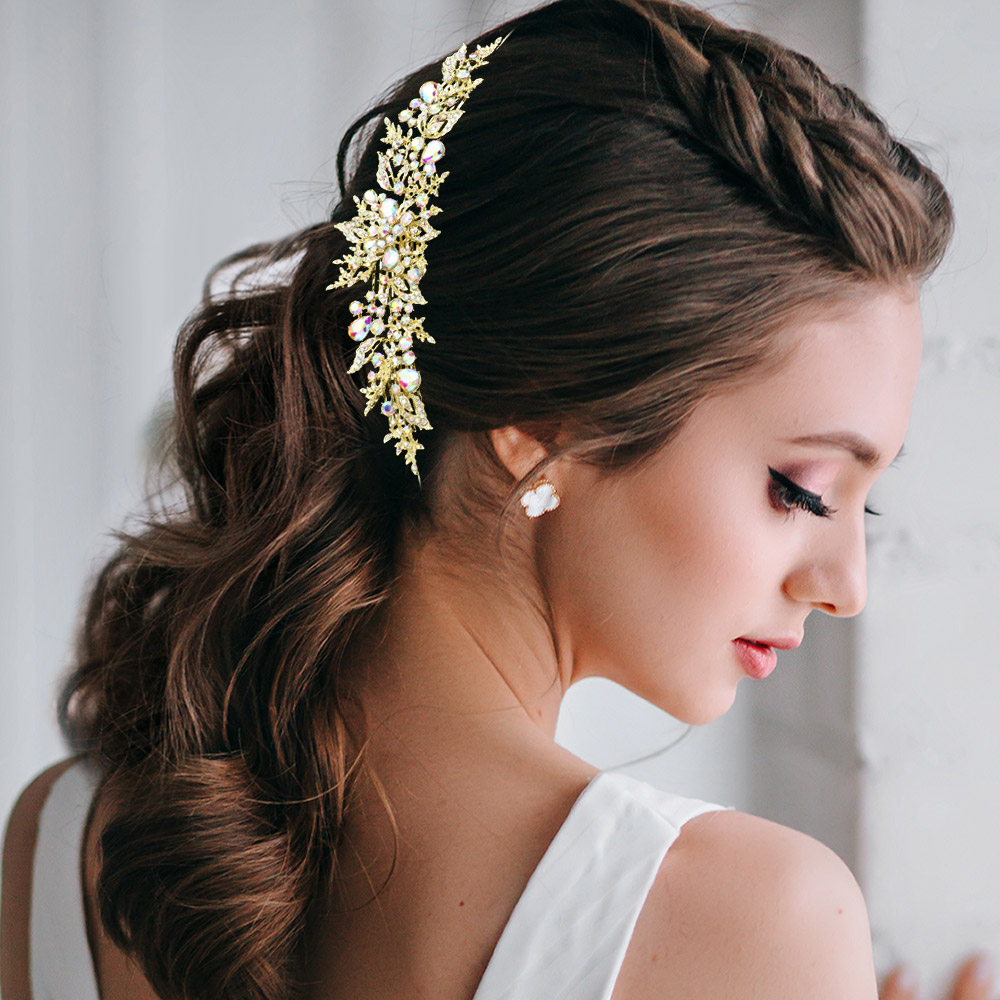 Stone Embellished Leaf Cluster Vine Wrap Headpiece