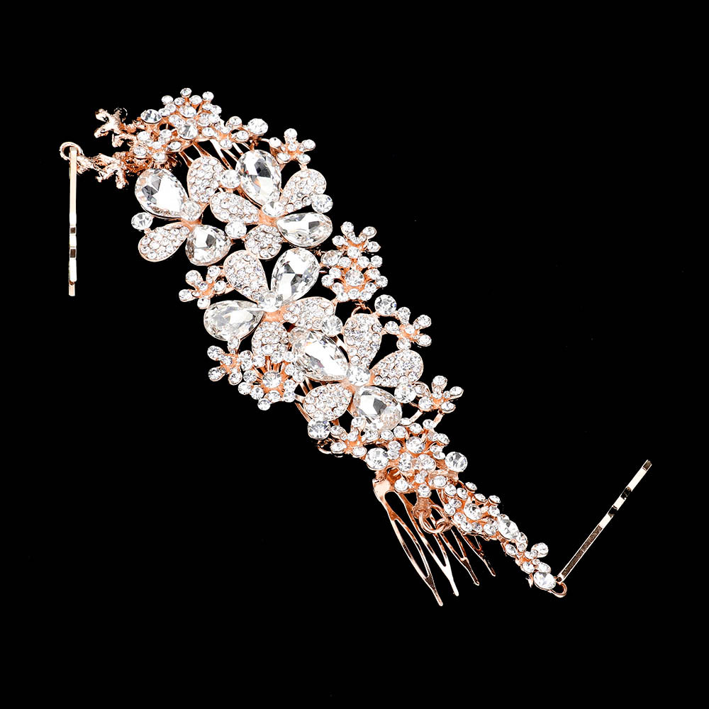 Details • Size : 9" X 2.5" • A Pair Bobbi Pin Included • Stunning floral hair clip with sparkling crystals and pearl accents, perfect for bridal updos or formal styles. Adds elegance and a romantic touch to any special occasion look with secure, graceful detail.
