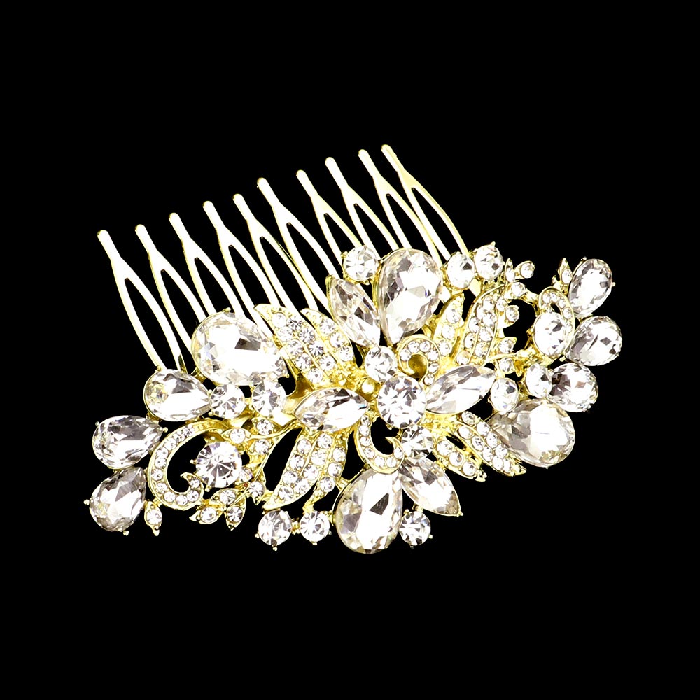 • Elegant floral hair clip with sparkling crystal accents, perfect for enhancing bridal, prom, or evening hairstyles. Adds sophisticated charm and glamour to any special occasion updo or formal look.