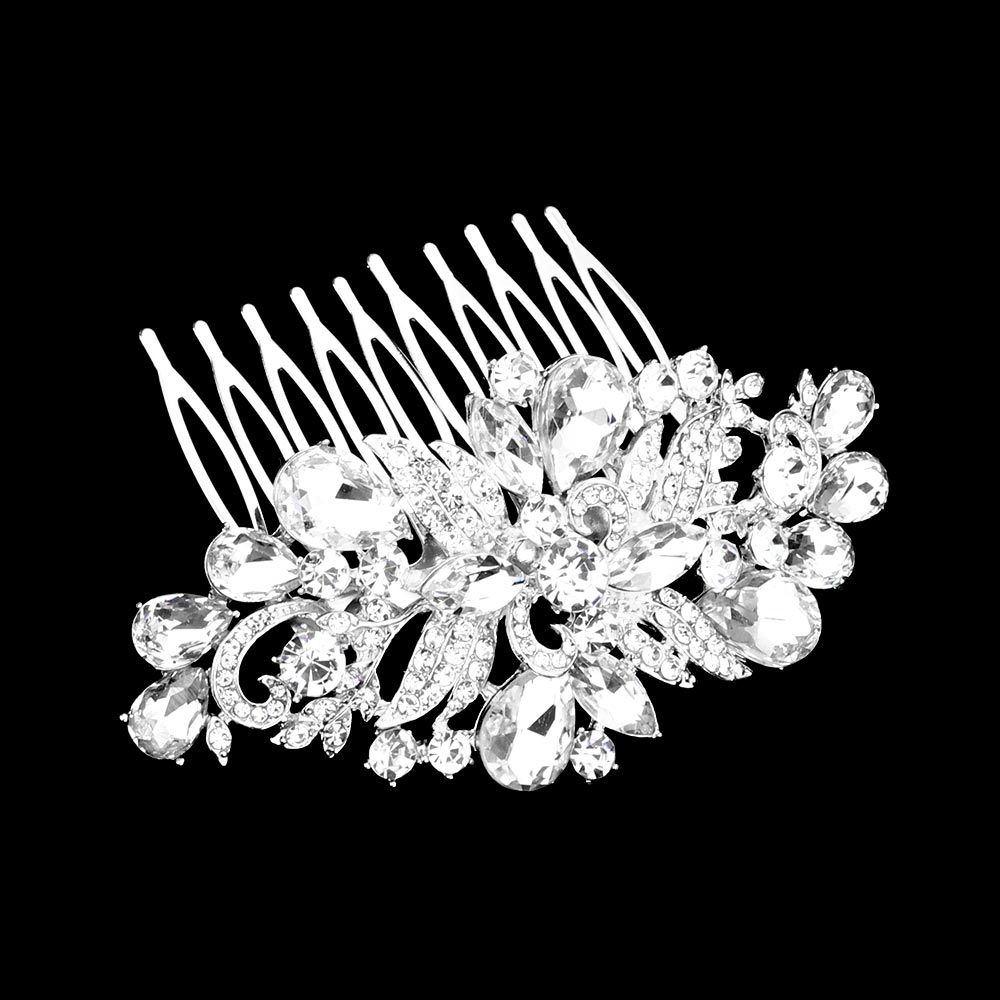 Teardrop Flower Stone Embellished Hair Comb