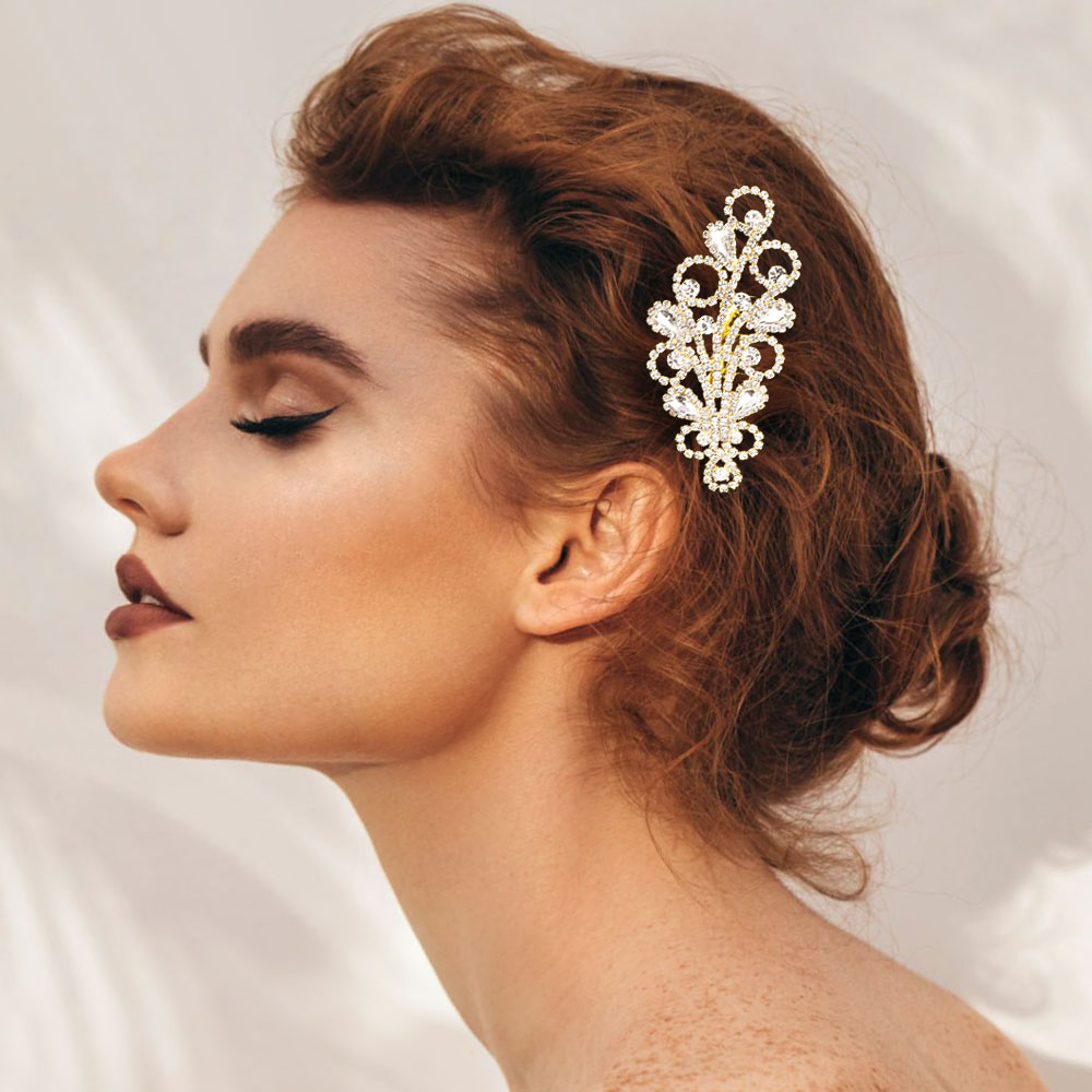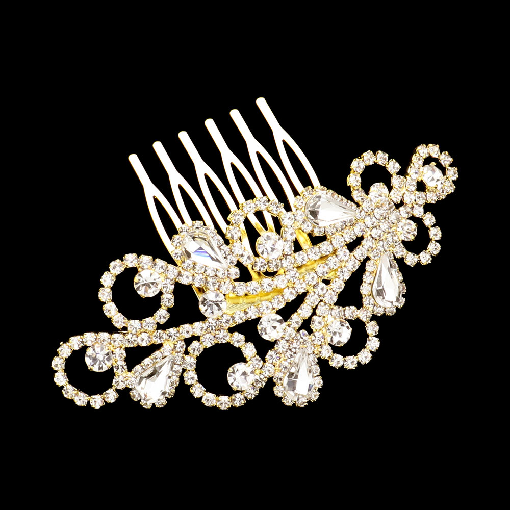 Teardrop Round Stone Cluster Embellished Rhinestone Paved Hair Comb
