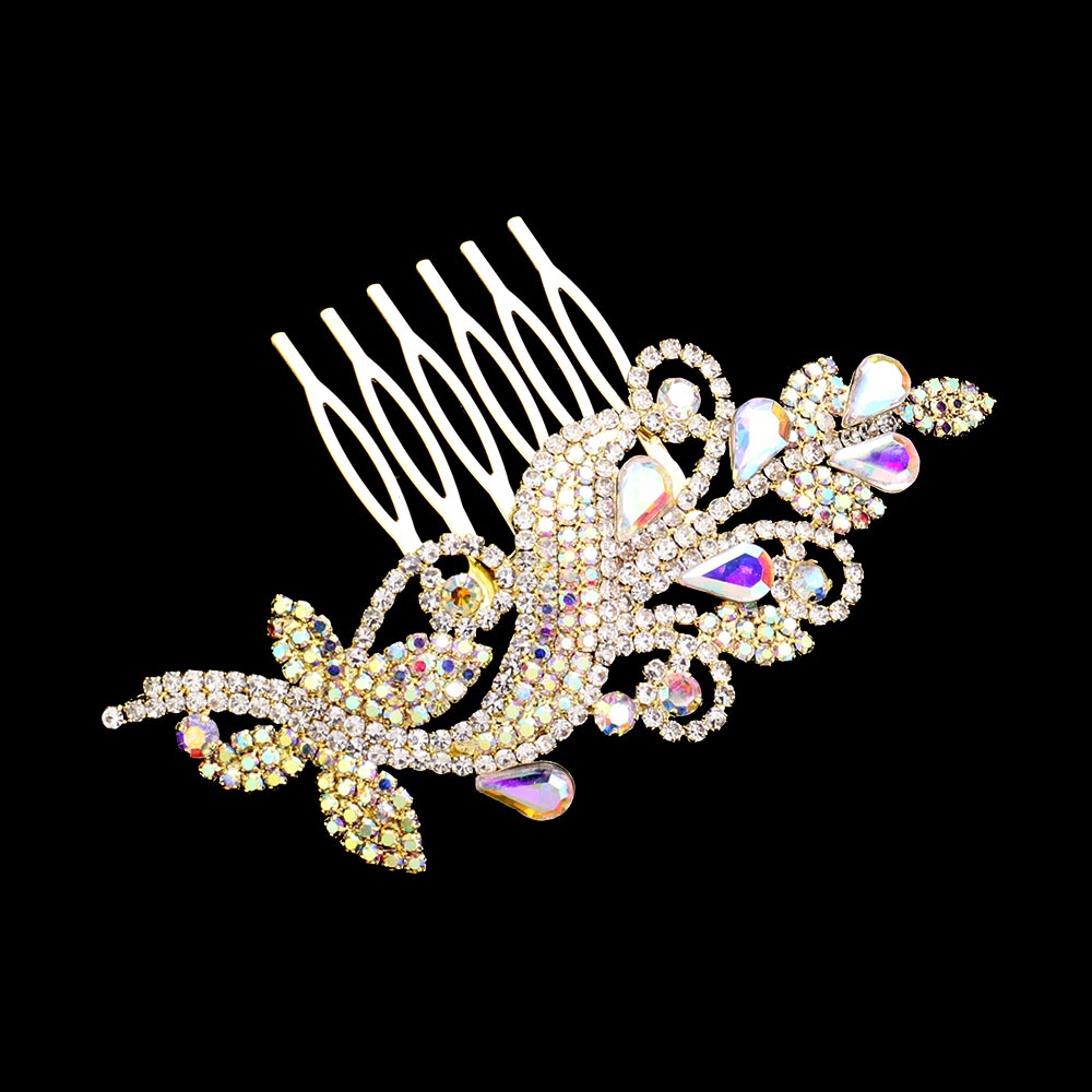 Teardrop Stone Accented Flower Hair Comb