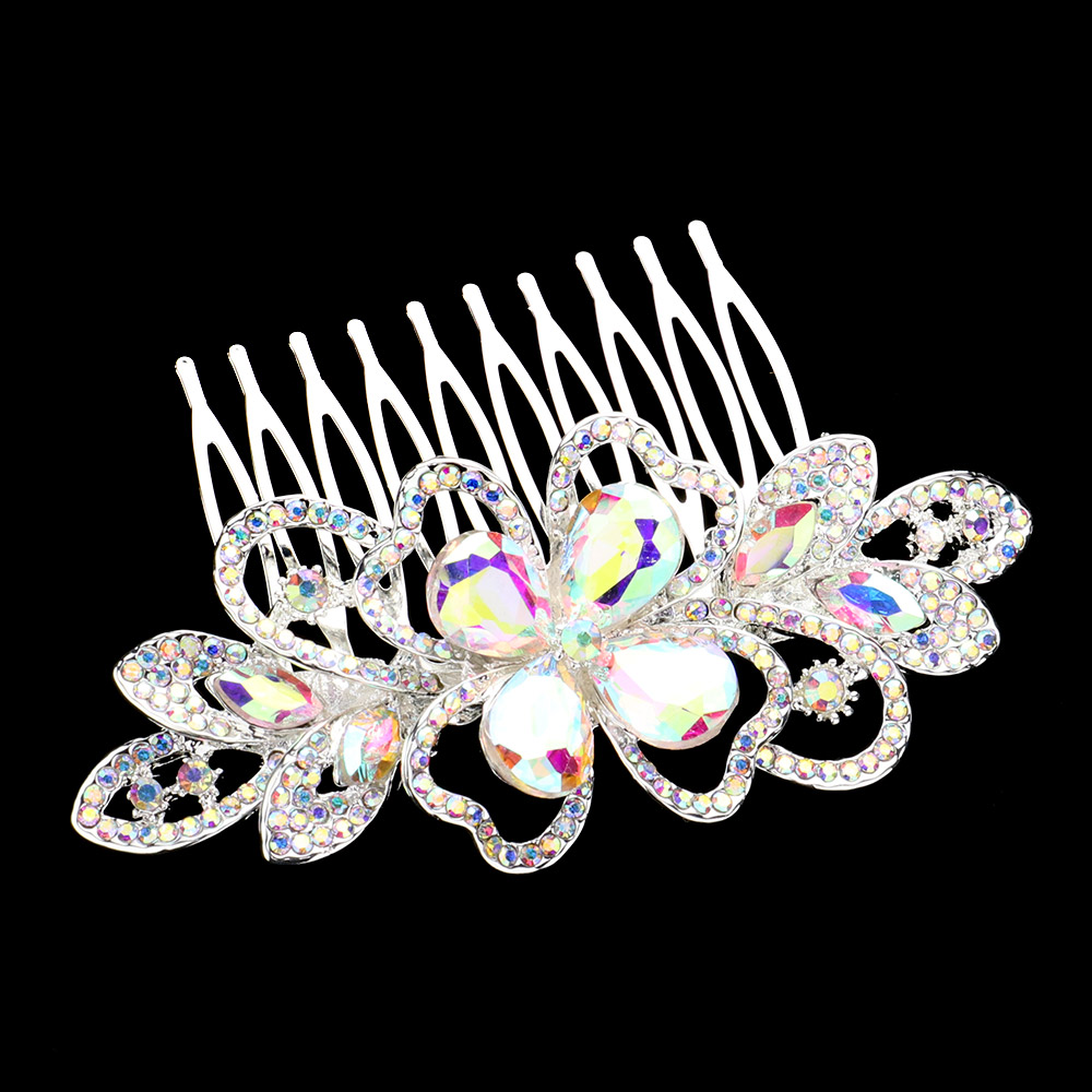 Teardrop Stone Cluster Accented Flower Pointed Hair Comb