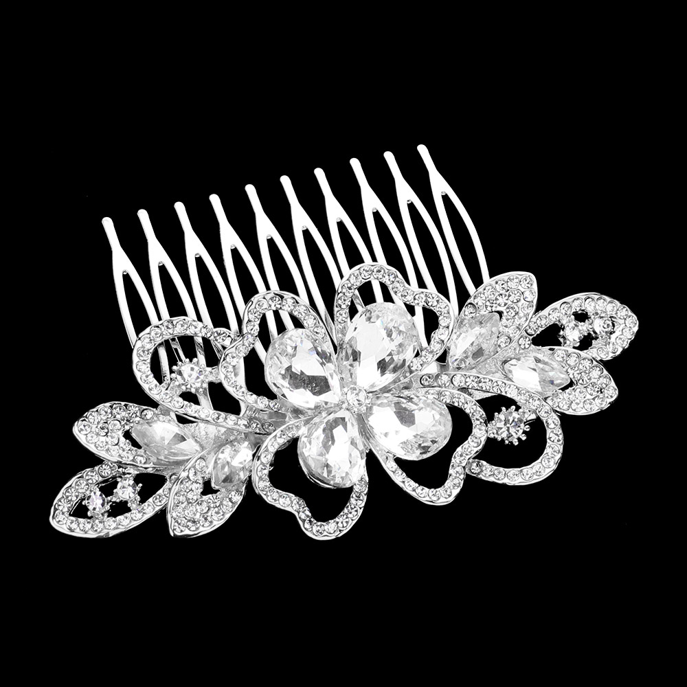 Teardrop Stone Cluster Accented Flower Pointed Hair Comb