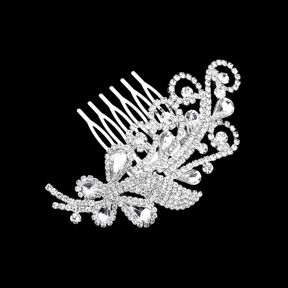 Teardrop Stone Cluster Pointed Rhinestone Paved hair Comb