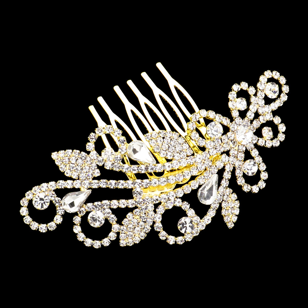 Teardrop Stone Cluster Pointed Rhinestone Paved hair Comb