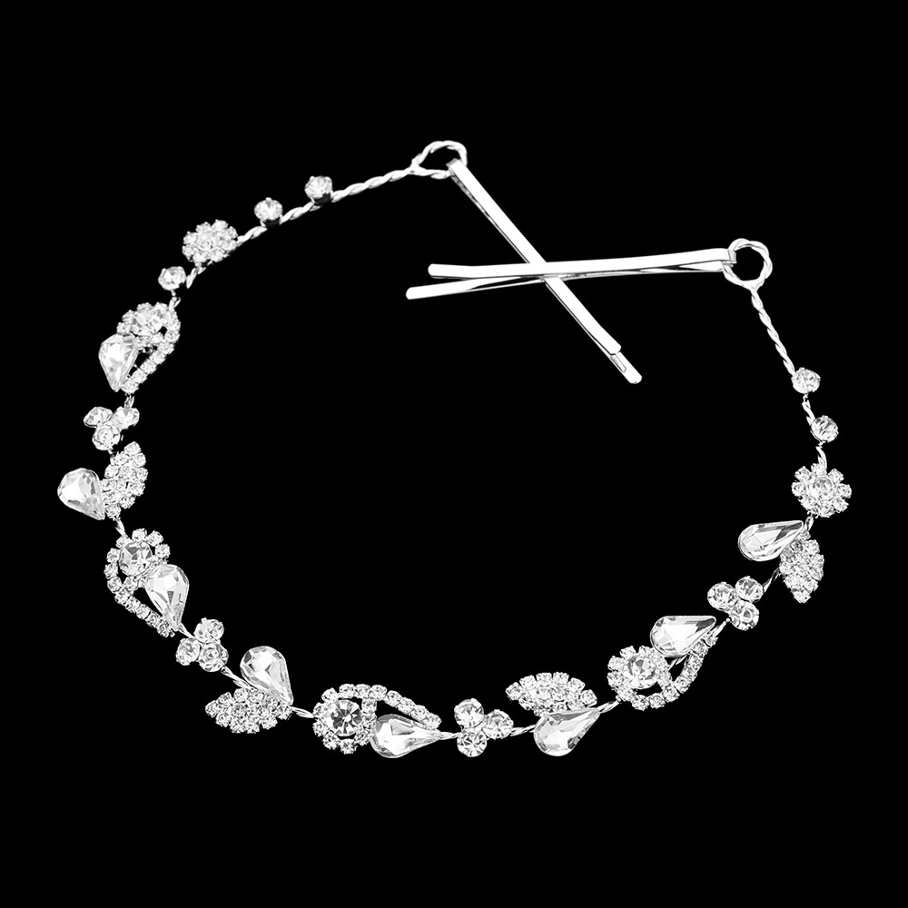 Details • Size : 11" X 0.6" • A Pair Bobbi Pin Included • Add shimmering elegance to any bridal or formal hairstyle with this crystal teardrop floral vine headband. Flexible and lightweight, it features sparkling accents and secure pins, making it perfect for weddings, proms, and special occasions. • Lead and Nickel Compliant