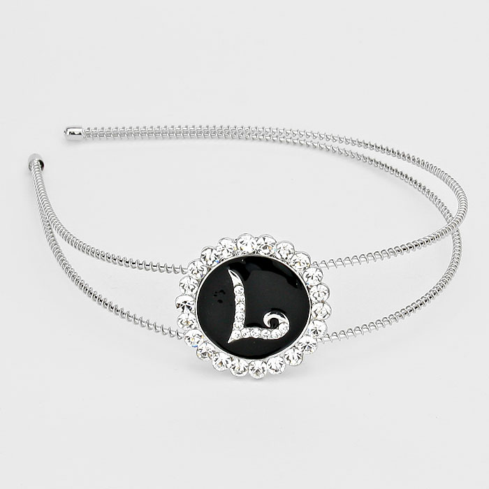 -L- White Gold Dipped Initial Monogram Metal Pendant Necklace