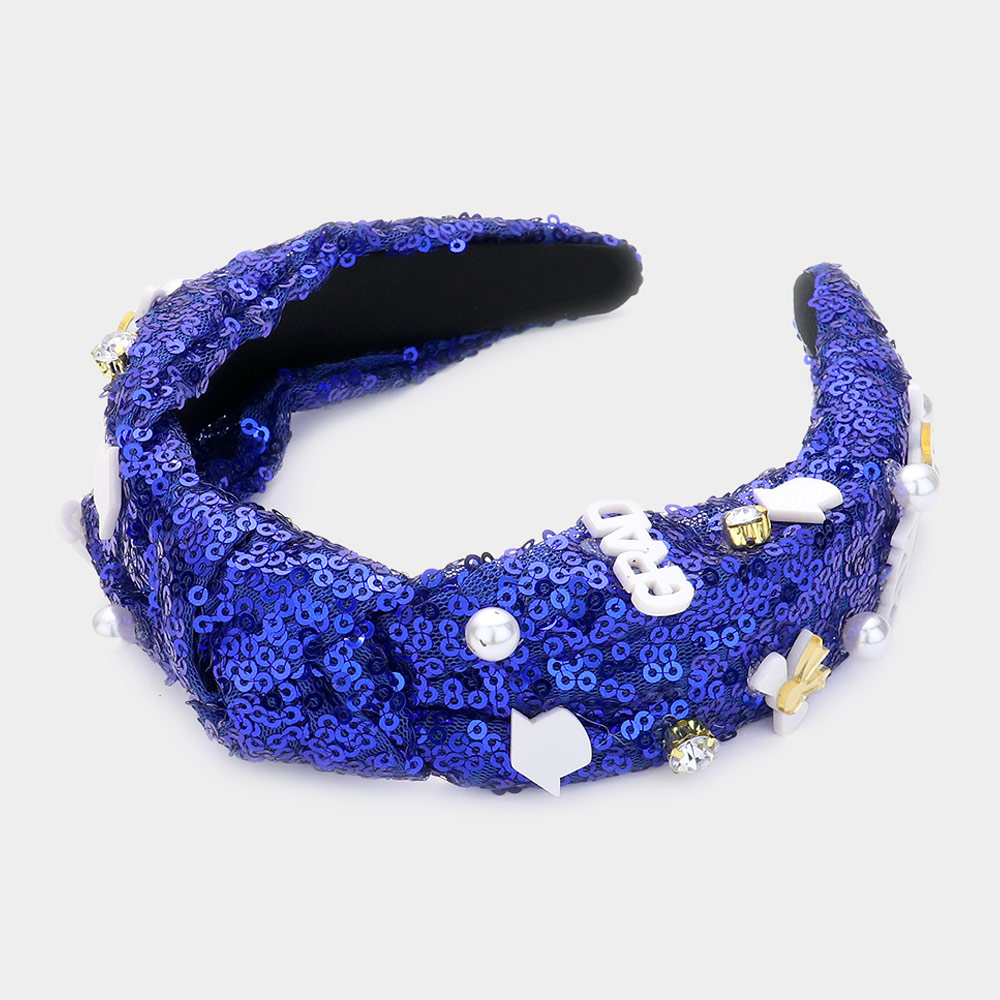 2024 Grad Message Pearl Stone Knot Sequin Headband