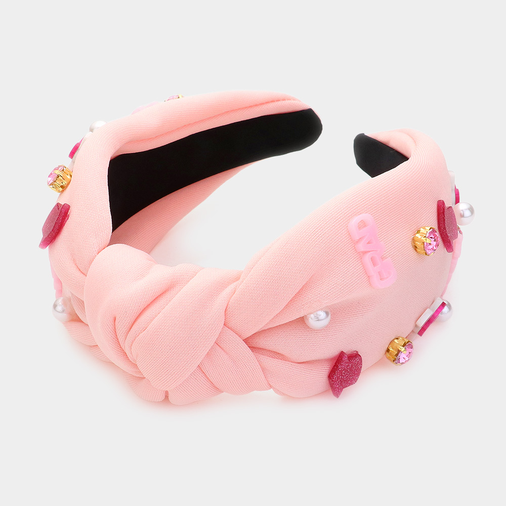 2024 Grad Pearl Stone Embellished Knot Headband