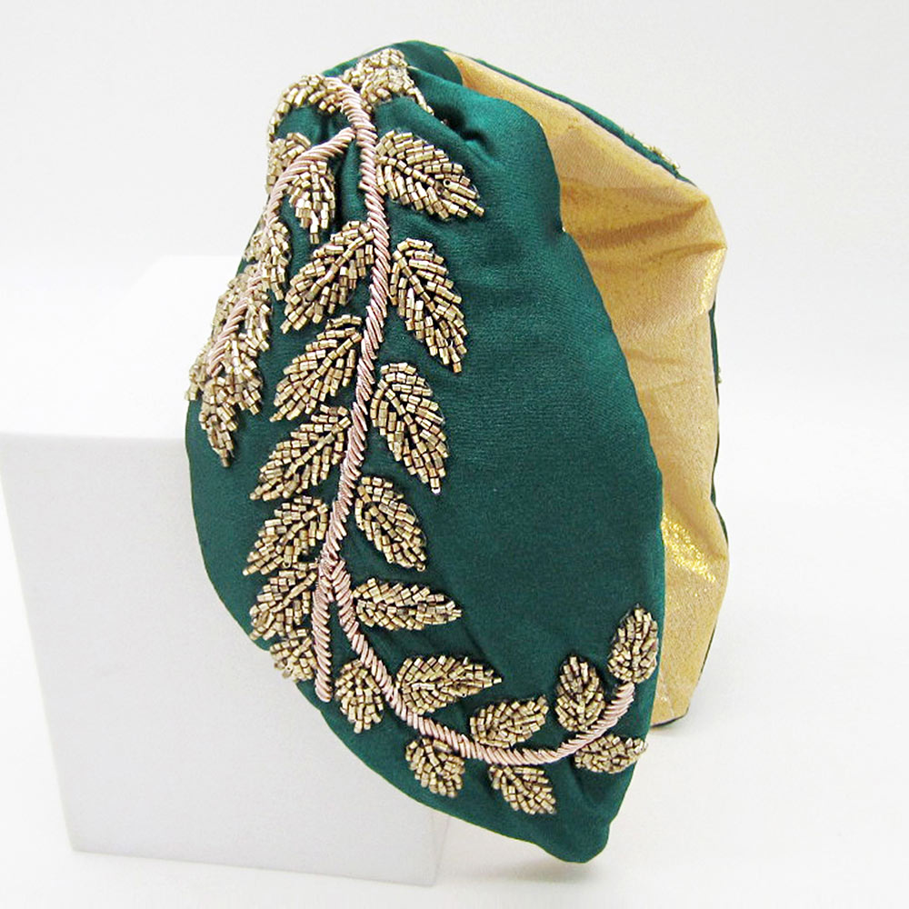 Beaded Leaf Cluster Knot Burnout Headband