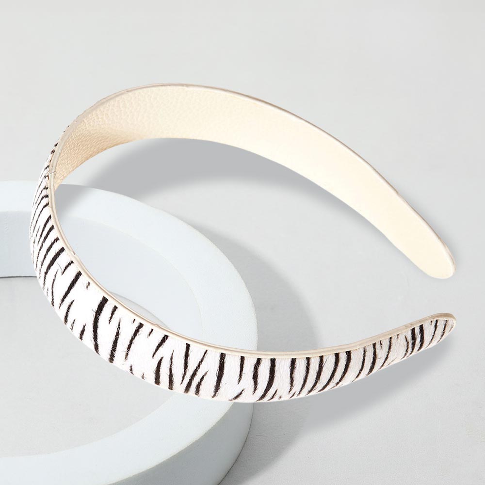 Calf Genuine Leather Zebra Print Headband