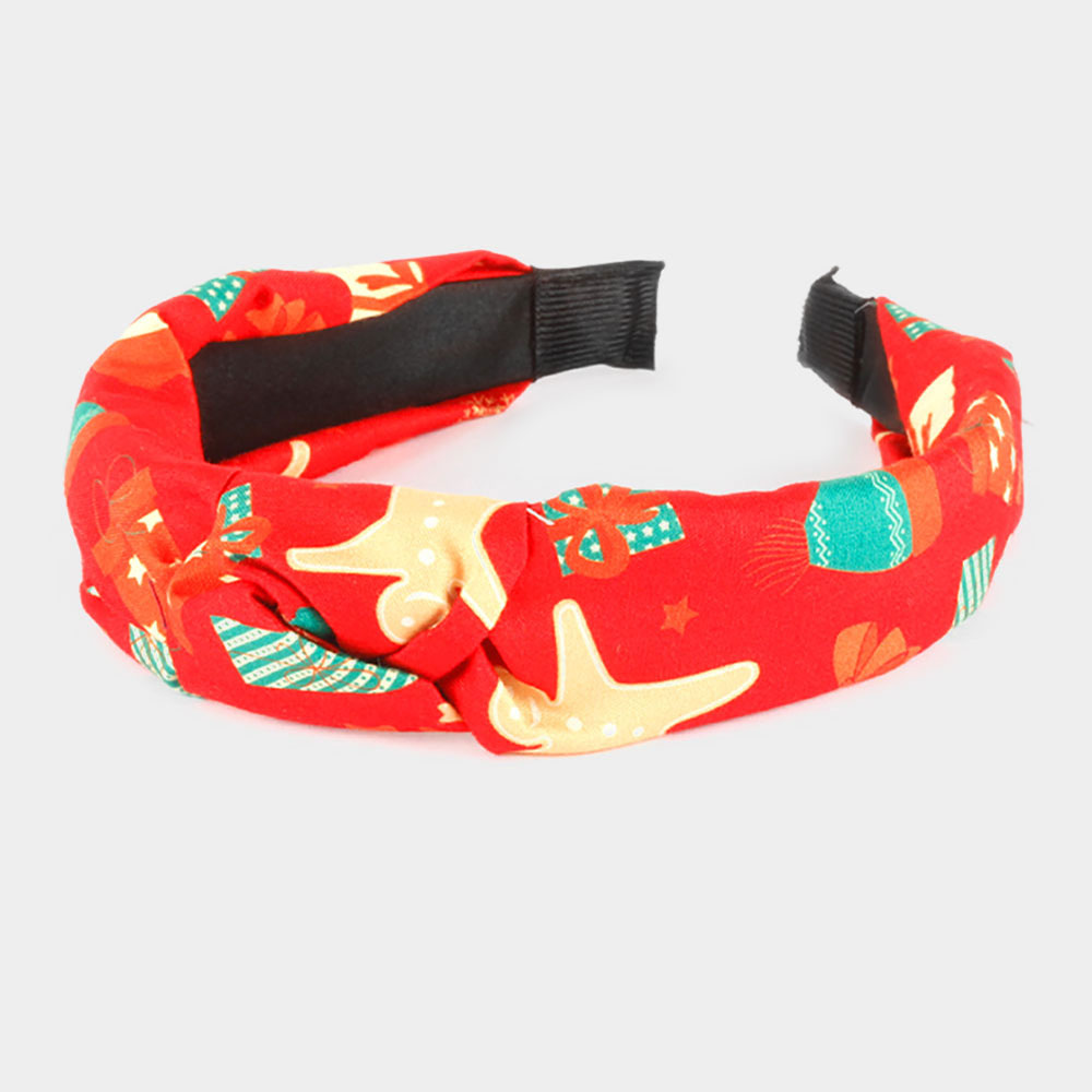 Christmas Tree Rudolph Jingle Bell Burnout Knot Headband