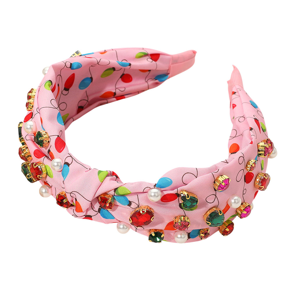 Christmas Light Printed Pearl Stone Cluster Embellished Knot Headband